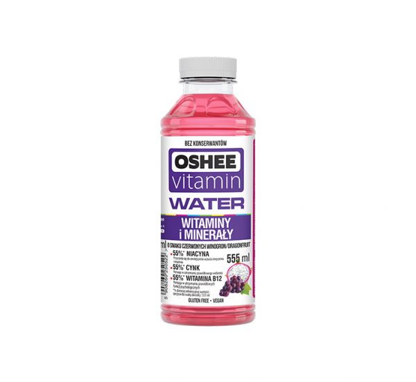 Oshee Vitamin Water Witaminy i Minerały to niegazowany napój o smaku czerwonych winogron i smoczego owocu, który wzbogacony jest o witaminy – niacynę, witaminę B6, biotynę, witaminę B12 oraz cynk. Napój nie zawiera konserwantów, sztucznych aromatów czy barwników. Połączenie dobrego smaku i dawki witamin to świetne rozwiązanie dla wszystkich dbających o zbilansowaną dietę i prowadzących zdrowy i aktywny tryb życia.